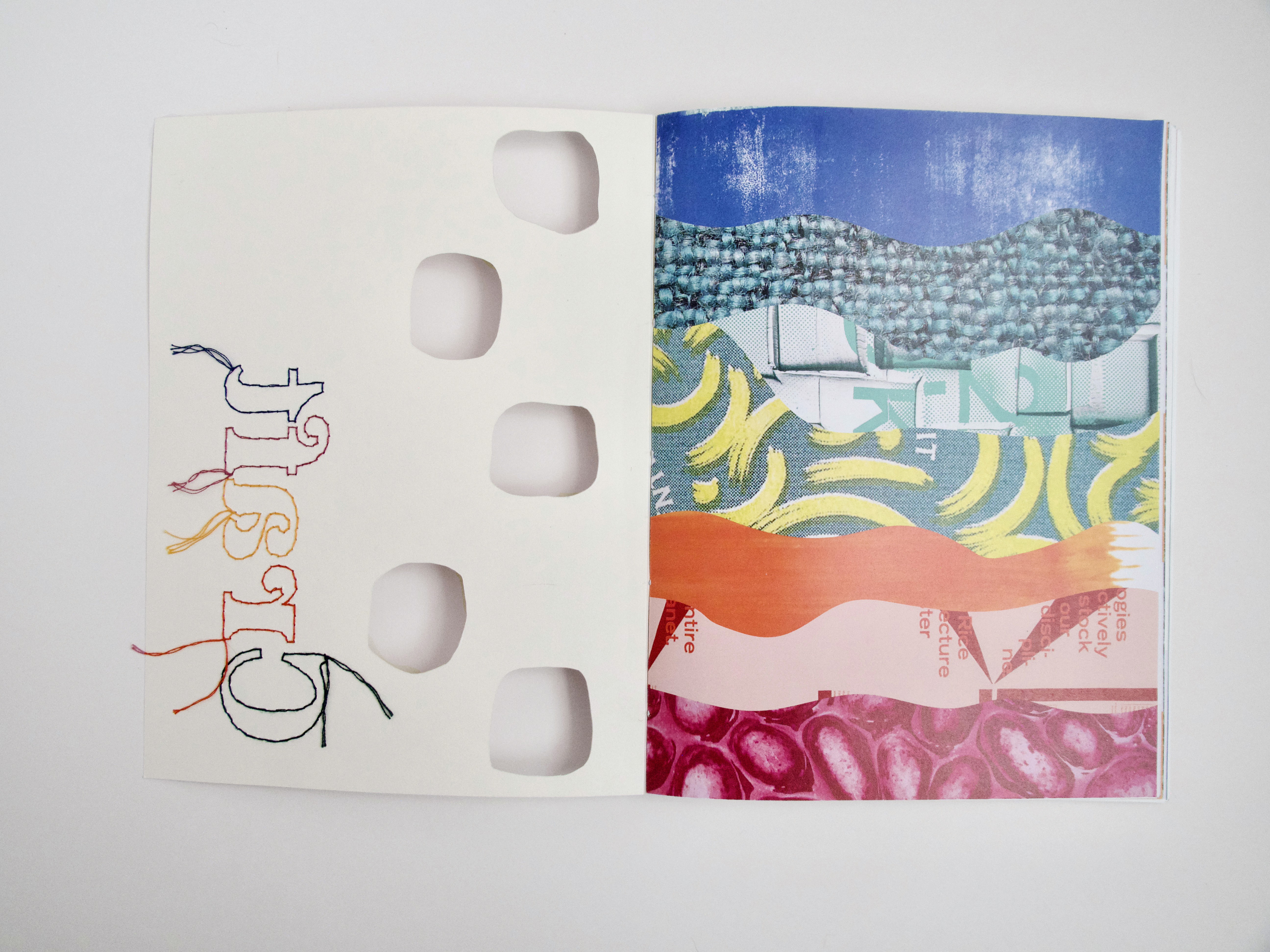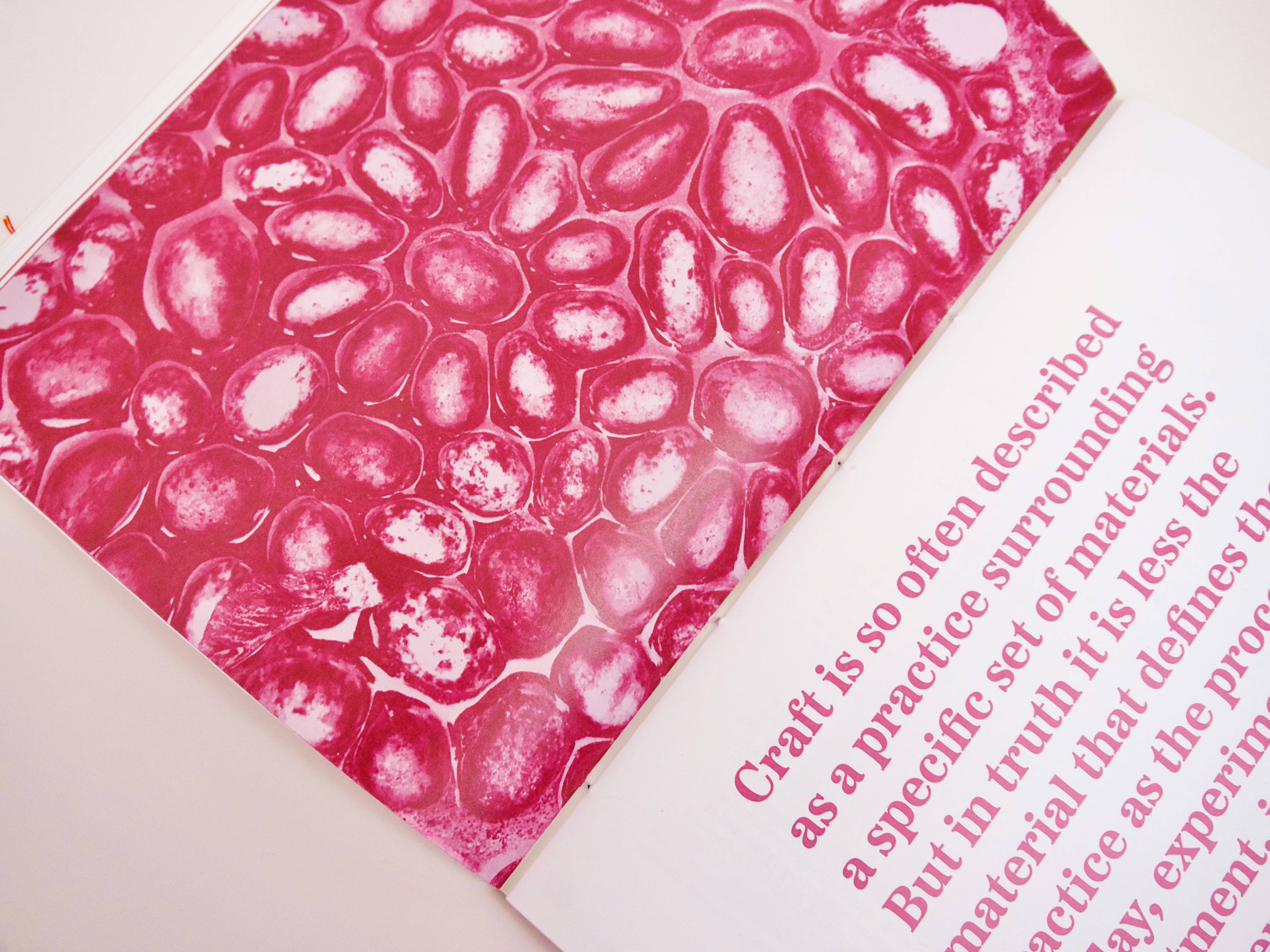 Inspired by traditional artistic methods, both the cover typography and binding are hand-crafted, linking the work in the catalog to the craft of the book itself. By using varied media and thought-provoking articles, the catalog encourages viewers to reconsider the long-standing notion of craft as a lesser art form.