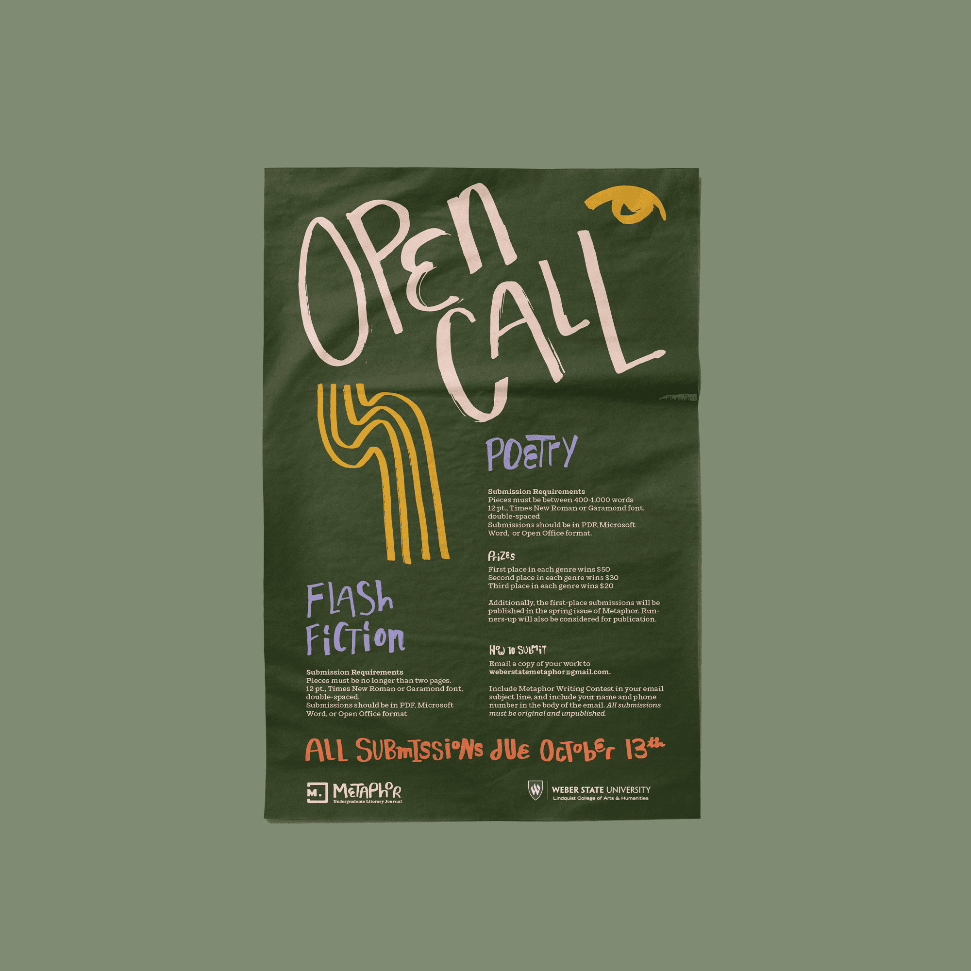 Published each spring since 1982, the magazine features original poetry, fiction, creative nonfiction, art, and experimental literary works from undergraduate students at Weber State University. We developed a brand identity that remained consistent throughout the semester yet flexible enough to adapt to different mediums.